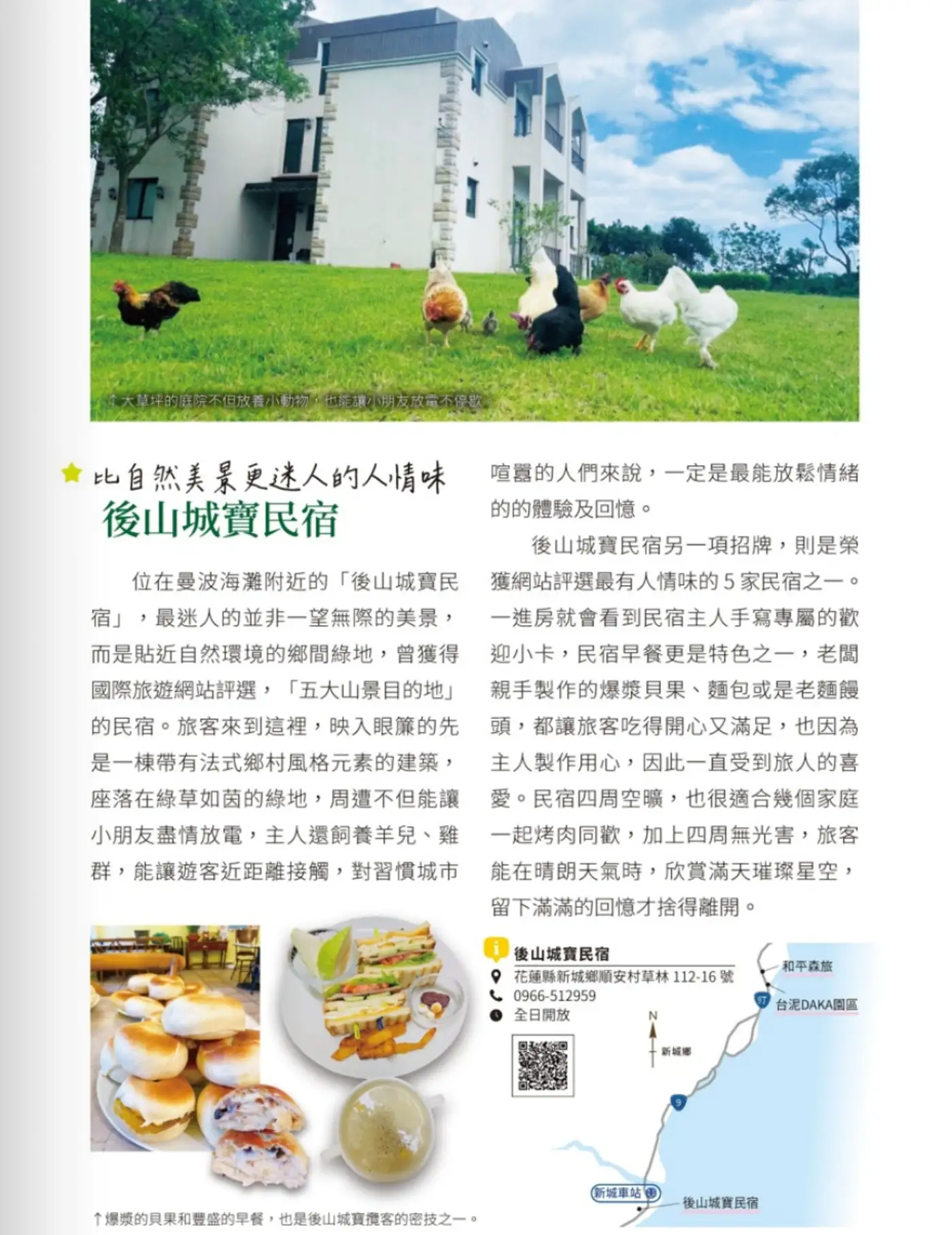 來到距離花蓮新城火車站約3分鐘車程的『後山城寶民宿Taroko Mountain View B&B』,是台灣後山城市中的瑰寶,曾榮獲Booking.com精選全台「最有人情味的民宿」之一!坐擁太魯閣壯麗山景,面向七星潭曼波海灘,矗立於群山、綠林扶疏中,米棕色相間的歐式獨棟別墅,是村落中最亮眼的城堡!